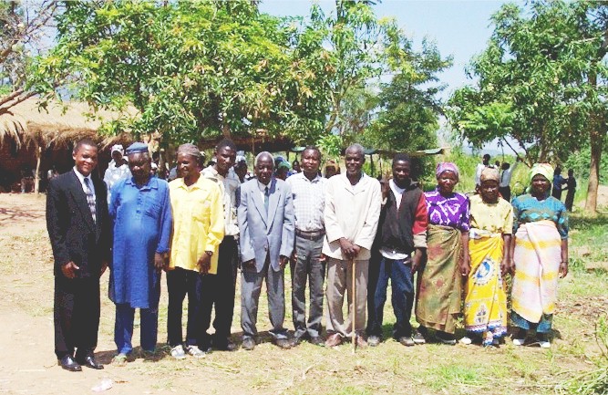 These are the special visitors attending our meeting. From left to right: The Hon. Kennedy Elton Kuntenga, MP Zomba Maloza Constituency. To the left of the Hon. Kuntenga is Mr. T.L. Ngomano, UDF District Treasurer of Zomba District. Mr. Ngomano is a Muslim which is noticeable due to the manner of his dress. To the left of Mr. Ngomano is Mr. Peter Mussa the Constituency Chairman of UDF for Zomba Maloza. Mr Mussa is also a member of the Muslim faith. To the left of Mr. Mussa is Councilor of Lipani Ward, Mr. Chawanda. To Mr. Chawanda’s left is Village headman Msiwila, the chief of the village where the Kanjuli church is located. To Chief Msiwila’s left is Village Headman Litia. To the left of Chief Litia is Village Headman Chitenjere II. To the left of Chief Chitenjere II is Village headman Njete. To the left of Chief Njete is Village Headmistress M’mina. To the left of Chief M’mina is Village Headmistress Mpamba. The lady standing to the left of Chief Mpamba is also a village headmistress, but her name was not included on the list given to me identifying each person. I am certain that this was an oversight , something which I did not notice until after I arrived back home in Blantyre. --Jim Franklin |