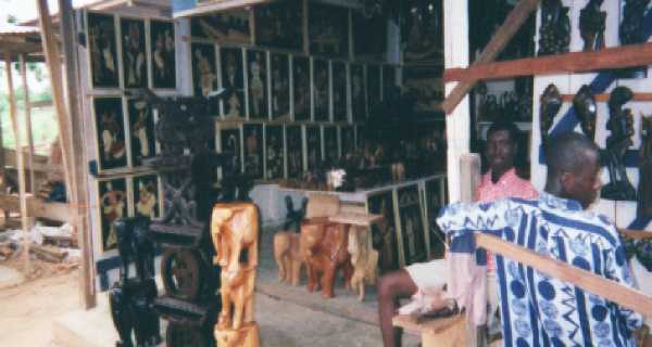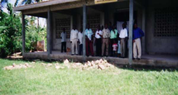 This picture was taken Lord's day morning in Takoradi where the congregation meets in a room at the YMCA. This is part of a new congregation in the town of Kukarantumi in the Central Region. This group is part of one of the older congregations in the Central Region at a village called Huhunya. They have met in this temporary for many years, and they have begun a new building nearby. The preacher at this congregation is Kwao Daughtey. A few of the leaders at the church in Koforidua came together to meet with us in the middle of the day. Koforidua is a major city in the Central Region. At the edge of the capital city of Accra and near the airport is a concentration of woodcarvers. |