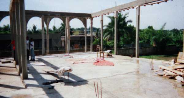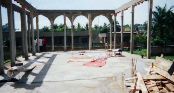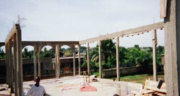 This church building is being built in Kumasi, Ghana, an industrial city and the second largest city in the country. The brethren began this building about one year ago and are almost ready to put on the roof. |