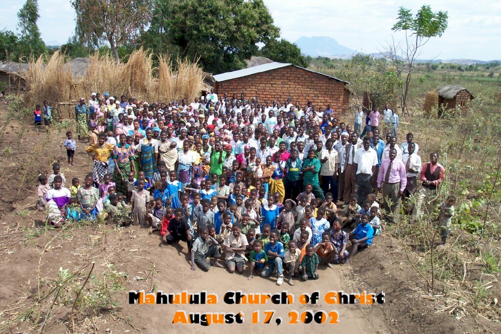 This is the gathering of brethren for the Gospel meeting at the Mahulula church on Saturday, August 17, 2002. Mahulula is located about 50 km N.E. of Blantyre, Malawi in the Zomba District. Bro. James Matimati, Jr. is the preacher for this congregation. Due to the recent “wholesale” influx of a certain religious sect in the country, we have begun making special emphasis of the Bible’s teaching concerning the important role of the Church of Christ of the New Testament in God‘s redemption plan for mankind. I think someone once said, “The best defense is a good offense.“ I am inclined to believe it, and that is exactly our approach to “contend(ing) for the faith which was once delivered unto the saints.” There were three responses for baptism on this occasion, all men. In the lower right of the picture, Stephen Kasenda is the first man in what would be the first row of adults. He has on a pink looking shirt. (Stephen looks shorter than he is because he is standing in a furrow). To his right, in a white shirt, is Chief Mahulula. To the right of the chief and slightly to his rear is Bro. James Matimati, Jr. He has on a coat which is slightly open. (You can view the separate pictures of his father who is 99 years old under “Bro. Matimati” in this same section of “Out Of Africa”). --Jim Franklin |