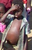 (distended abdomens are a result of malnutrition)