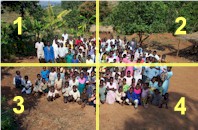 left side of the picture in a blue suit is Group Village Headman Mpenda.