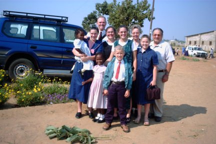 Roger, Judy, Rachel, Sara, Rebekah, Aaron Boone, Jim and Jan Maudlin, Mweembe and B.J. Muzukutwa